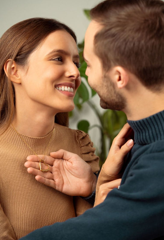 Herz Halskette mit gravierten Ringen